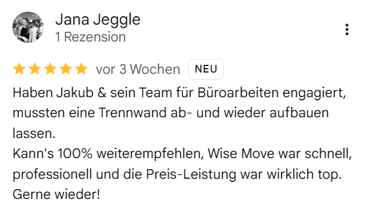 Erfahren Sie, was unsere Kunden über Wise Move sagen.
