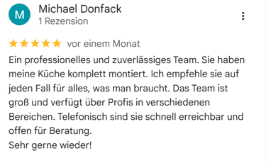 Dabei ist es uns wichtig, Ihre individuellen Wünsche zu verstehen und Sie umfassend bei Ihrem Projekt zu unterstützen – egal, ob es sich um die Montage einer neuen oder gebrauchten Küche, einer kompakten Küchenzeile oder einer komplexen Einbauküche mit modernsten Elementen handelt.